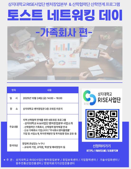 10월 상지대학교 산학협력단&RISE사업단 산학연계 프로그램 안내드리며 많은 관심과 참여 부탁드립니다.