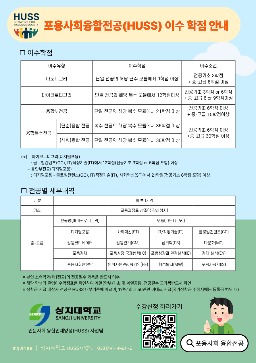 [포용사회융합전공] 보너스 전공, 학점 관리는 HUSS(휴스) 수강신청으로