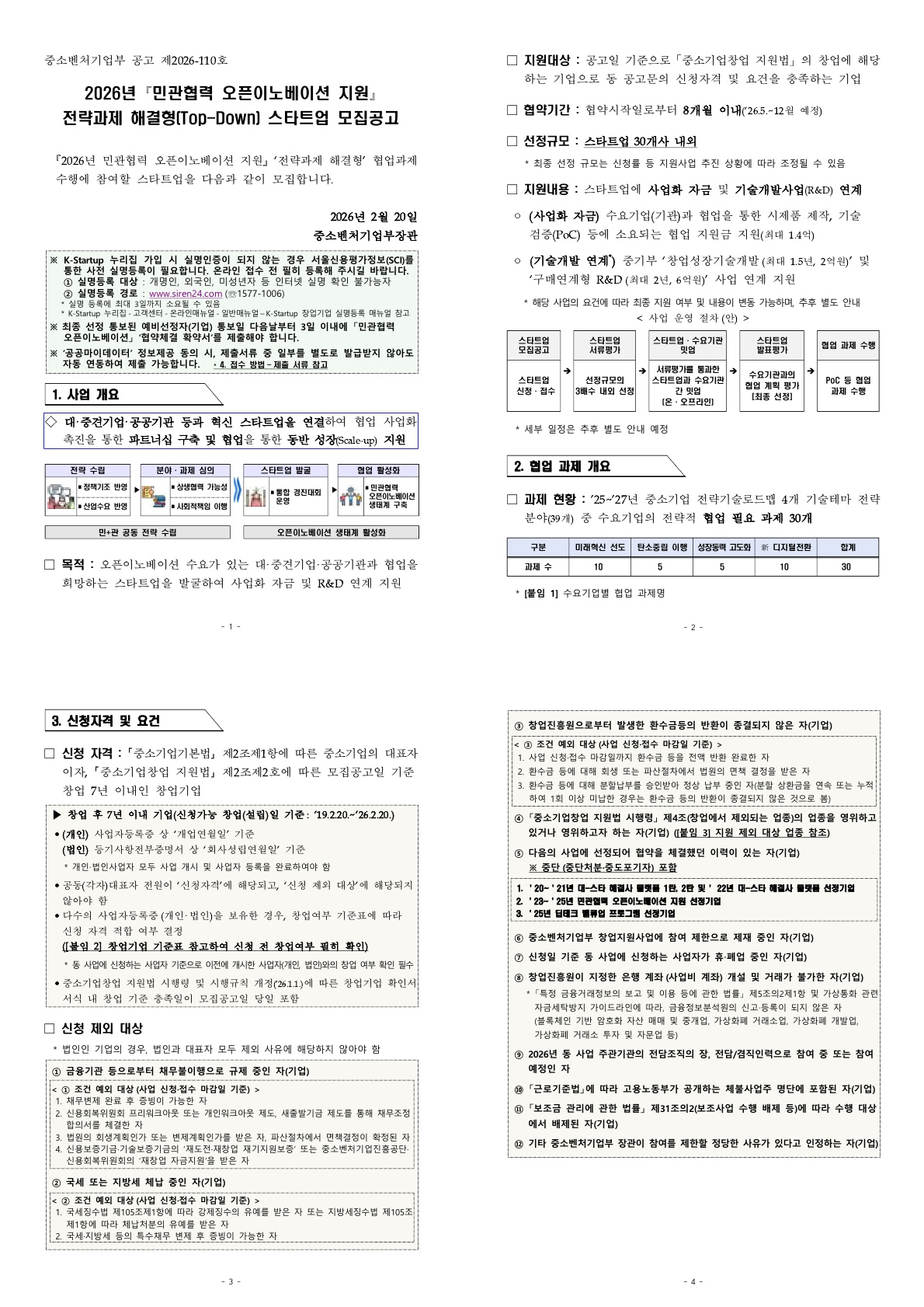 2026년 「민관협력 오픈이노베이션 지원」전략과제 해결형(Top-Down) 스타트업 모집공고