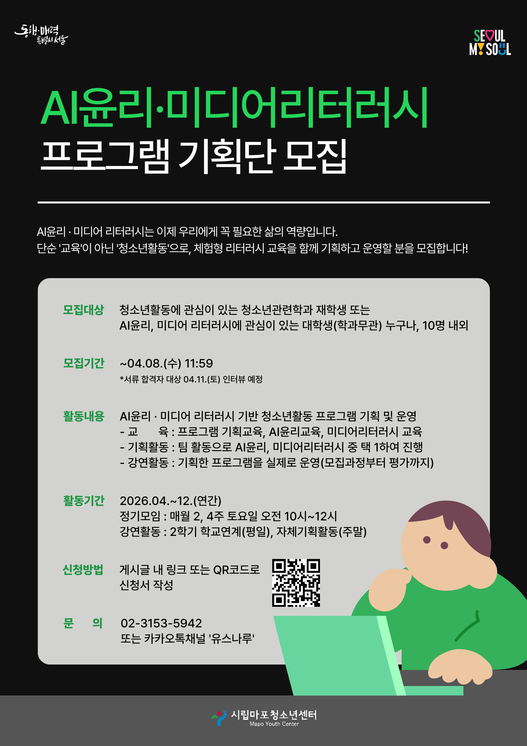 마포청소년센터 AI윤리 및 미디어리터러시 또래강사 모집 안내