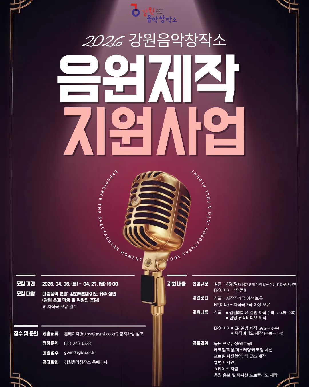 [공고] 2026강원음악창작소 음원제작 지원사업 공고.hwp [80 KB]