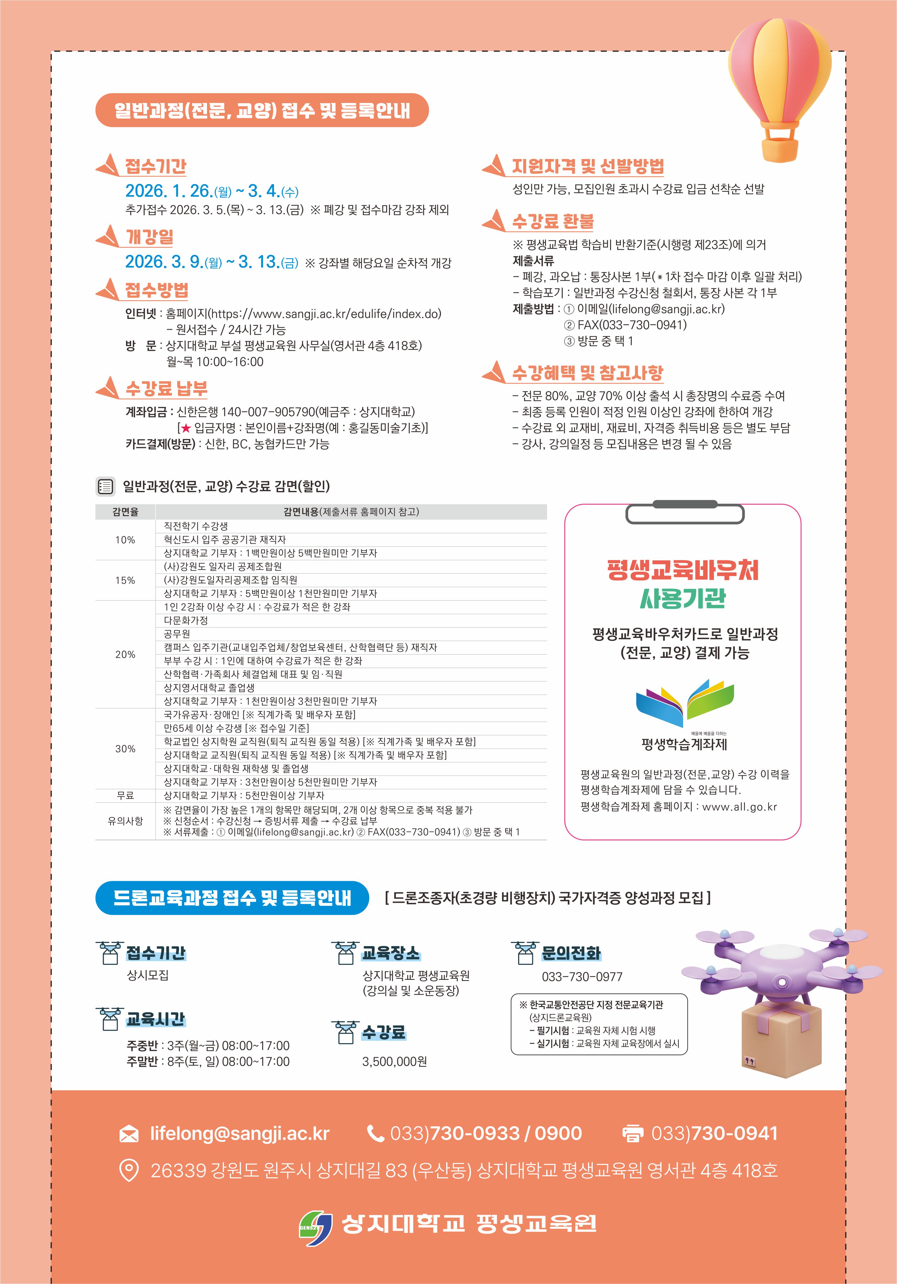 평생교육원에서는 2026학년도 1학기 일반과정 수강생을 모집합니다.