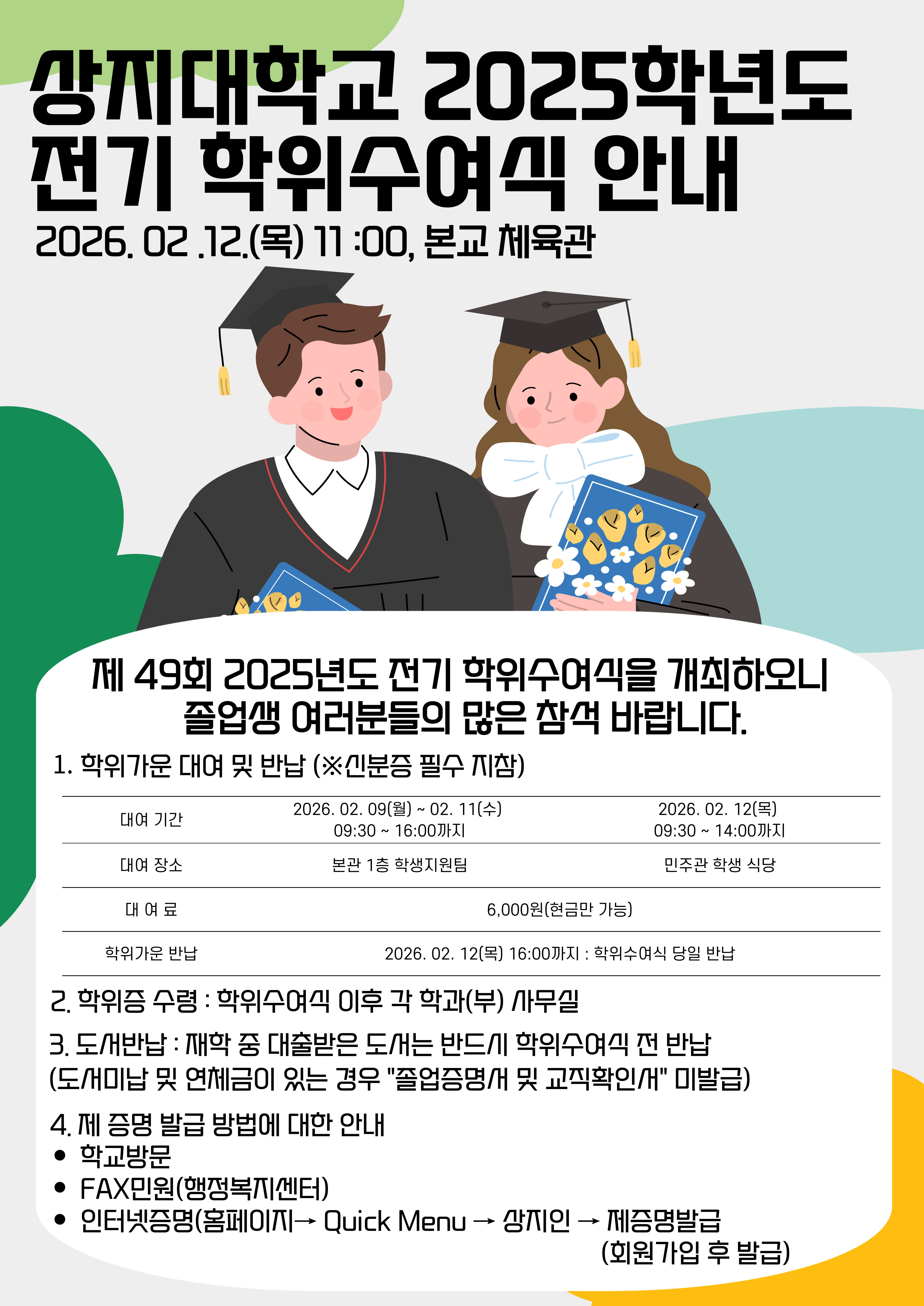 학과에서 진행하는 졸업식 행사는 2월 12일 오전 10시에 진행될 예정입니다.