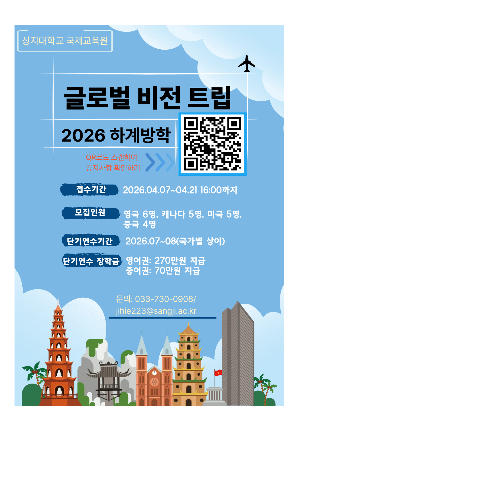 ◆ 문의 : 033-730-0908 / jihie223@sangji.ac.kr