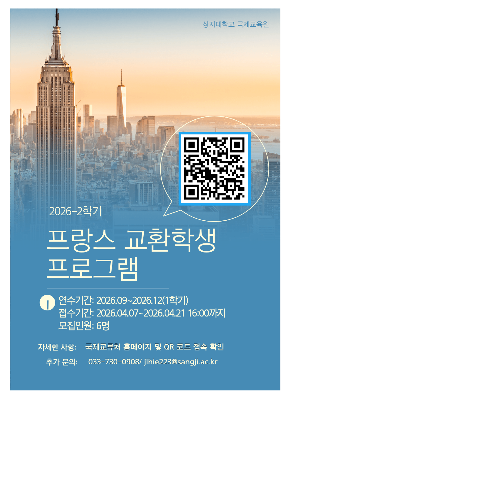 ◆ 문의 : 033-730-0908 / jihie223@sangji.ac.kr